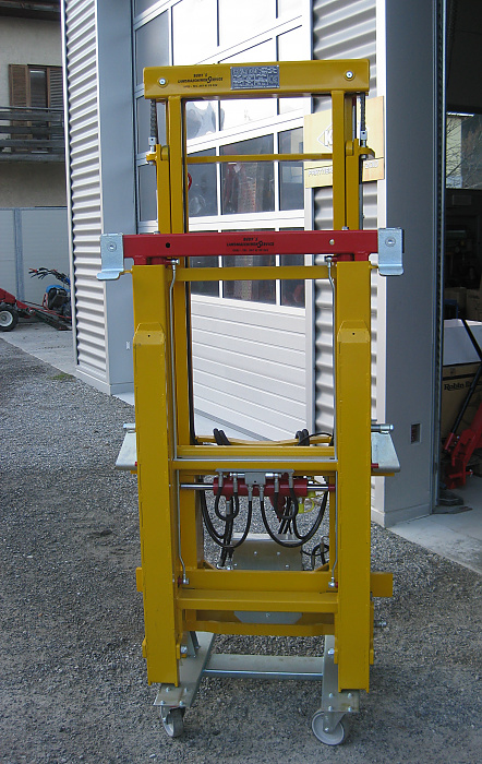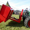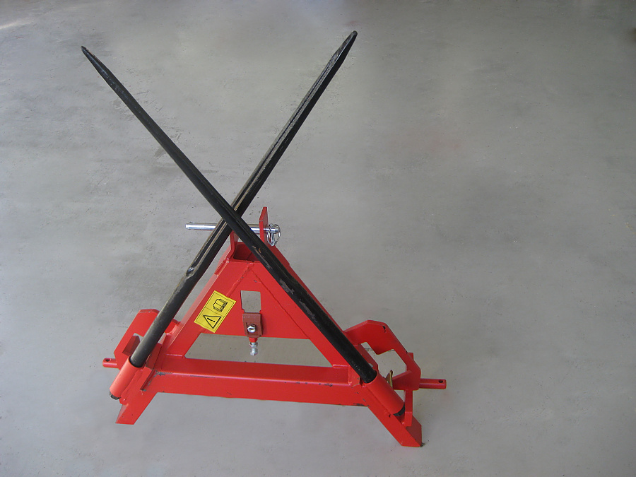 Serienmäßig mit Dreipunktaufnahme Kat. 1 und 2 – komplett mit Großballenzinken 1100 mm lang – Dreipunkt- und Anbaudreieck Kombination mit Bolzen, aufklappbar – Tragfähigkeit: 800 kg