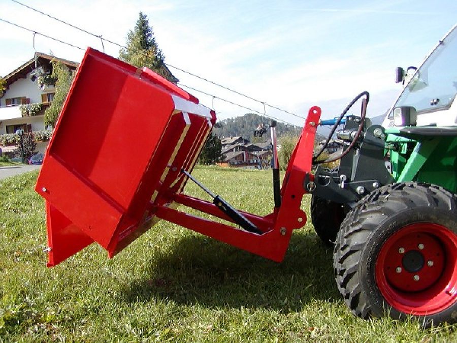 Serienmäßig mit Dreipunktaufnahme Kat. 1 und 2 – komplett mit Großballenzinken 1100 mm lang – Dreipunkt- und Anbaudreieck Kombination mit Bolzen, aufklappbar – Tragfähigkeit: 800 kg