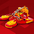 Durch die Schleifteller an den Schwenkarmen und den Stützrädern erzielt das Scherengerät, auch auf unebenem Gelände, eine optimale Bodenanpassung. Zwei Feintaster mit hydraulischer Feinsteuertechnik machen es möglich, schonend und genau um den Stammbereich zu mulchen, ohne jeglichen Einsatz von Herbiziden!